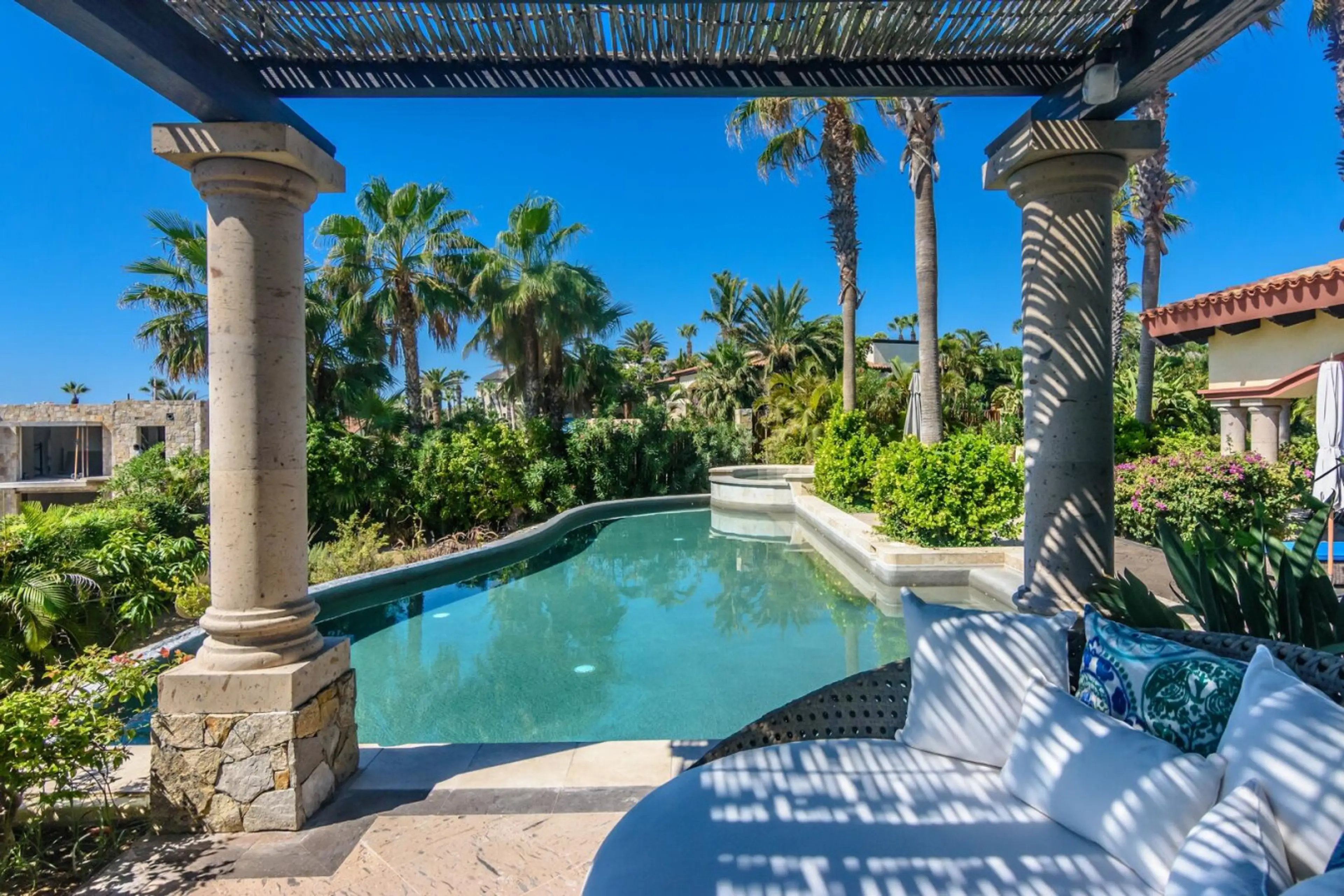 Includes $100 credit in our online grocery store for pre-stocking. This is a fabulous time of year to visit Los Cabo! Lots going on……Sammy Haggar’s birthday celebration, Bisbee fishing tournament and Sunset Fest among other fun things to do. Set second row inside the double gated Las Residencias...